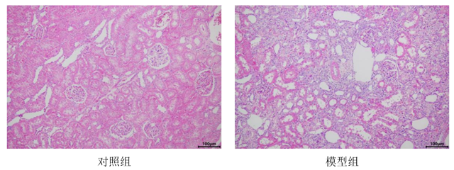 造模方法:暴露、游离、结扎并剪断左侧输尿管,逐层缝合,术后第14天成功制备肾纤维化模型。