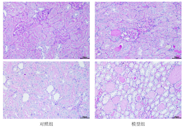 造模方法:隔7天两次尾静脉注射阿霉素,末次注射40天后成功制备局灶性节段性肾小球硬化模型。